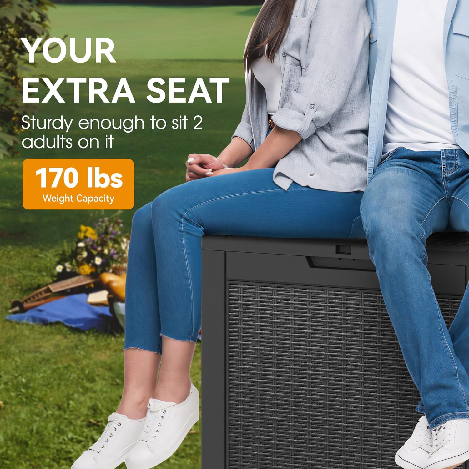 - 🏕️【HIGH QUALITY MATERIAL】This outdoor storage bin is made of high-density PP resin with excellent waterproof, sunproof and dustproof performance to withstand all kinds of harsh weather, while the rattan-like texture surface design adds a modern touch to your outdoor space.