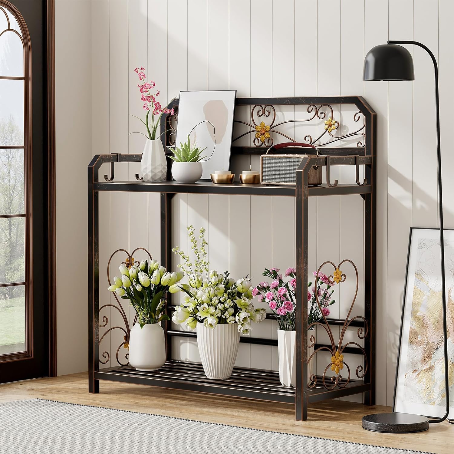 - 2-Tier Spacious Design: Enjoy ample workspace with a 2-tiered structure, offering plenty of room for potting, gardening tools, and plants. The top surface is perfect for gardening tasks, while the lower shelf provides additional storage for soil, pots, and other supplies. Perfect for organizing your garden essentials!