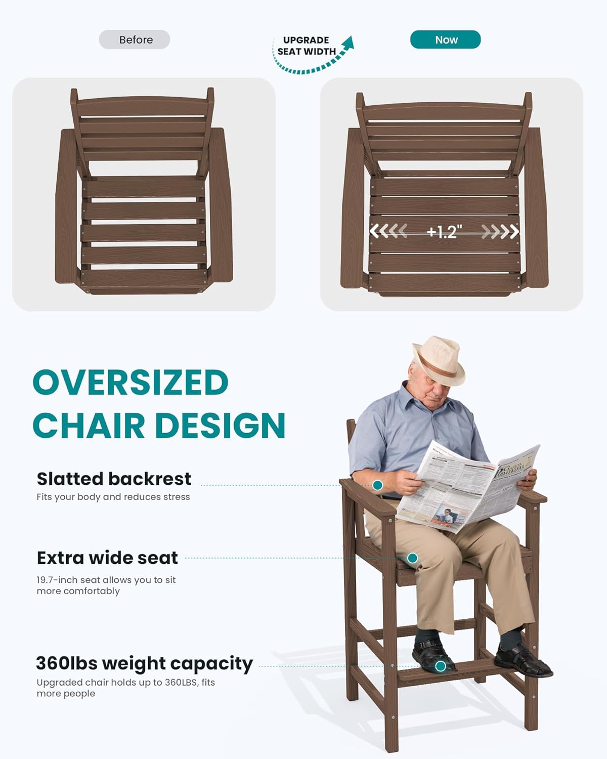 SERWALL Tall Adirondack Chairs Set of 2, Oversize Balcony Adirondack Chairs Set, Outdoor Bar Height Barstools Widened Chair Set for Bistro, Poolside, Garden, Brown