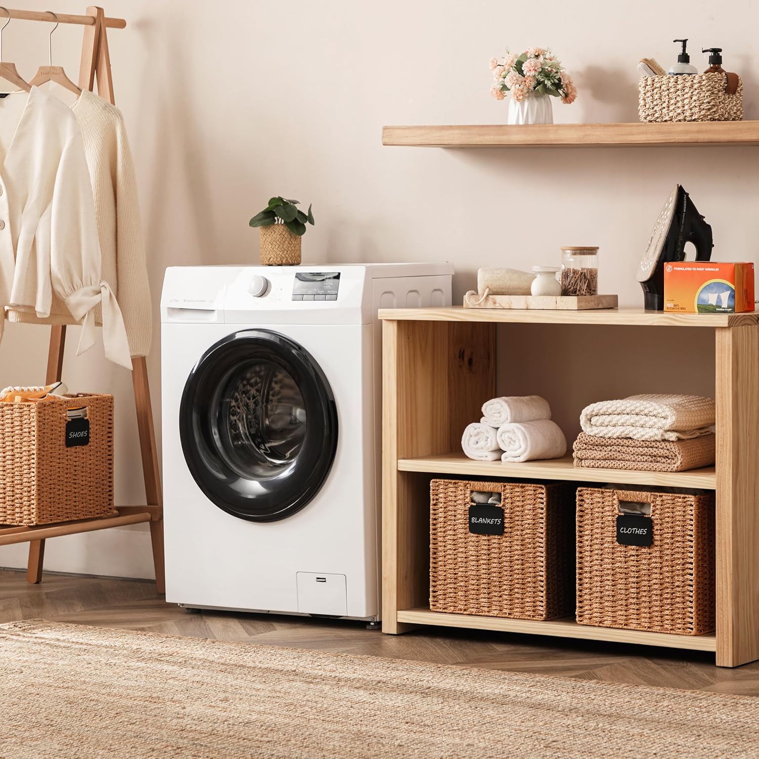 UBBCARE 2 Pack Wicker Basket, 12×12 Storage Cubes with Label, Foldable Cube Storage Bin with Handle, Square Storage Basket for Shelves, Woven Paper Rope Basket for Organizing, Caramel