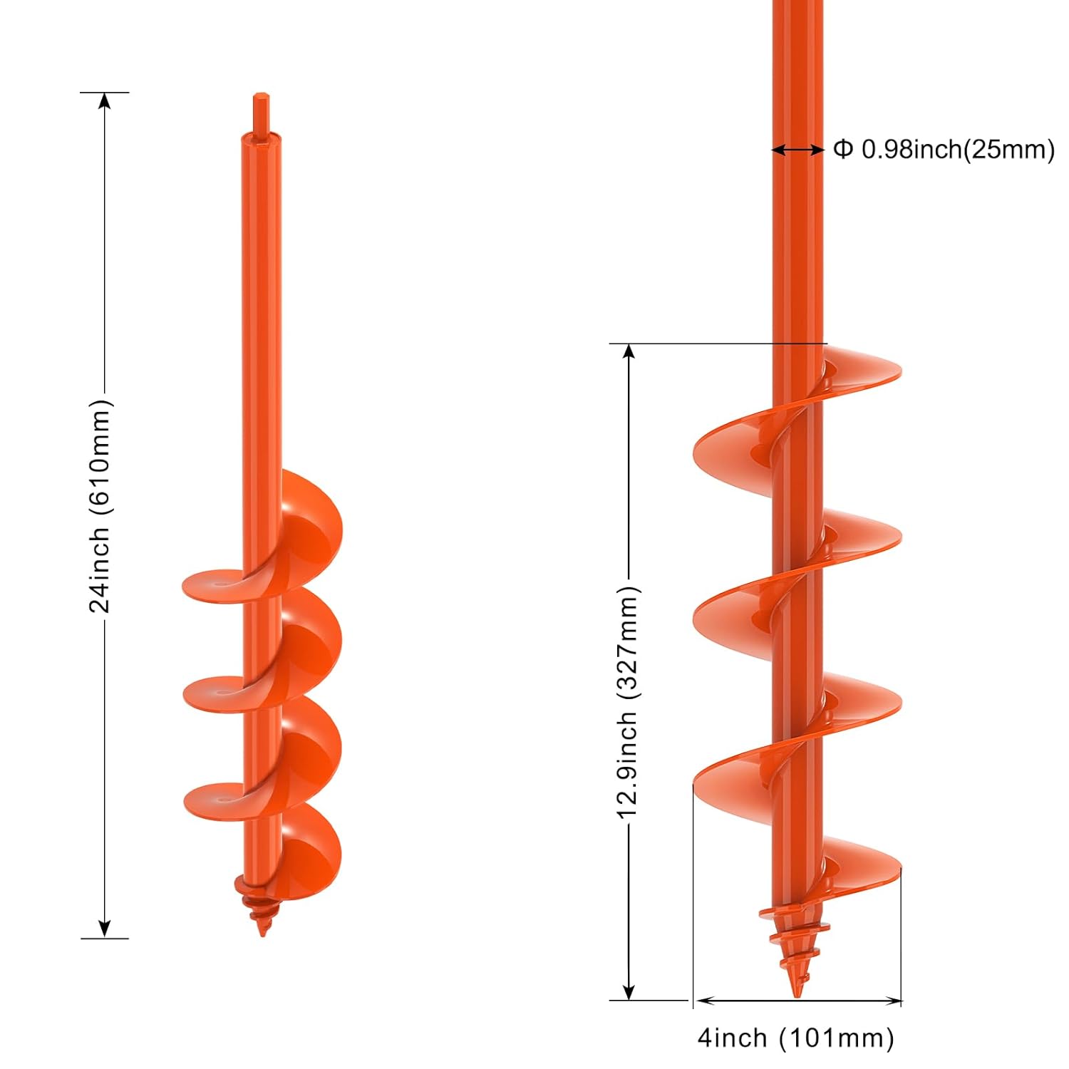 - πΊπππ&ππππππ ππ πΌππ: Each drill augers for digging holes has no sharp edges, the 3mm thick helix makes it super easy and quick to drill a a 4'' hole that will cut through clay, tough mud, sand, dirt and deals with rocks pretty well.