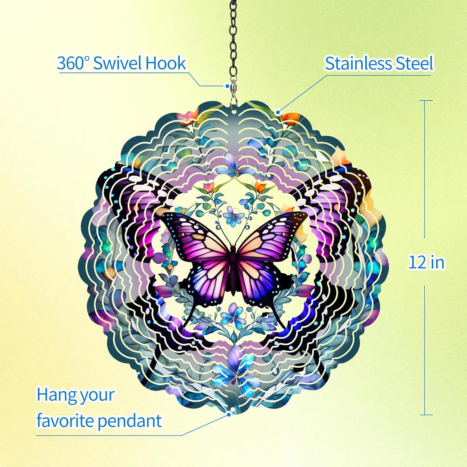 - Hanging Outdoor Wind Sculptures, butterflies wind spinners can rotate 360°, 12 inchin total diameter Includes a swivel hanging hook so wind spinner can twirl in the breeze, mandala wind spinner, whether it is hung indoors or outdoors, it can add a special fun and warmth to your life