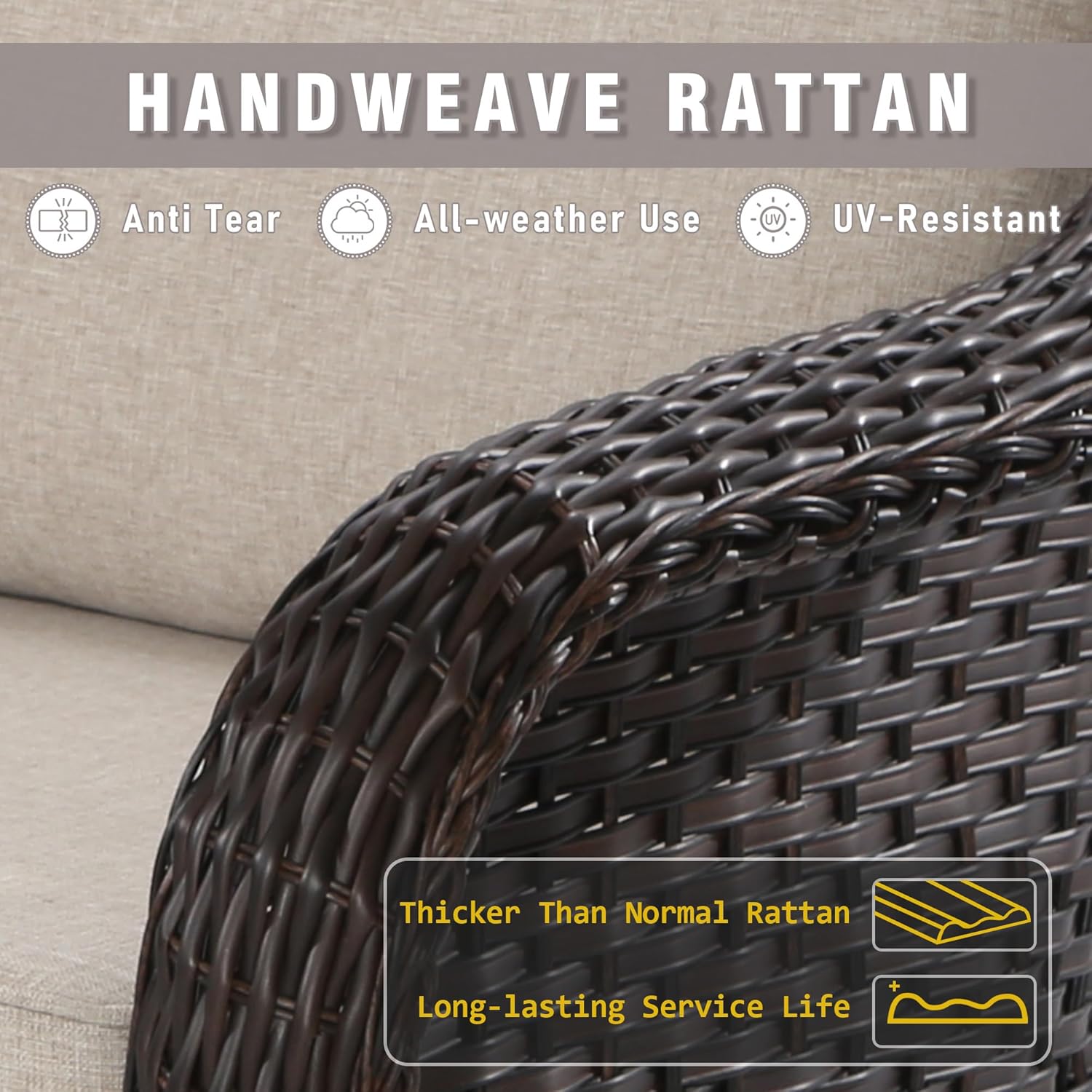 - PATIO WICKER LOVESEAT: Qsoer Patio Wikcer Loveseat use 100% handwoven PE rattan. Quality craftsmanship and a thicker rattan weave make it has longer service life, all-weather use and durable.