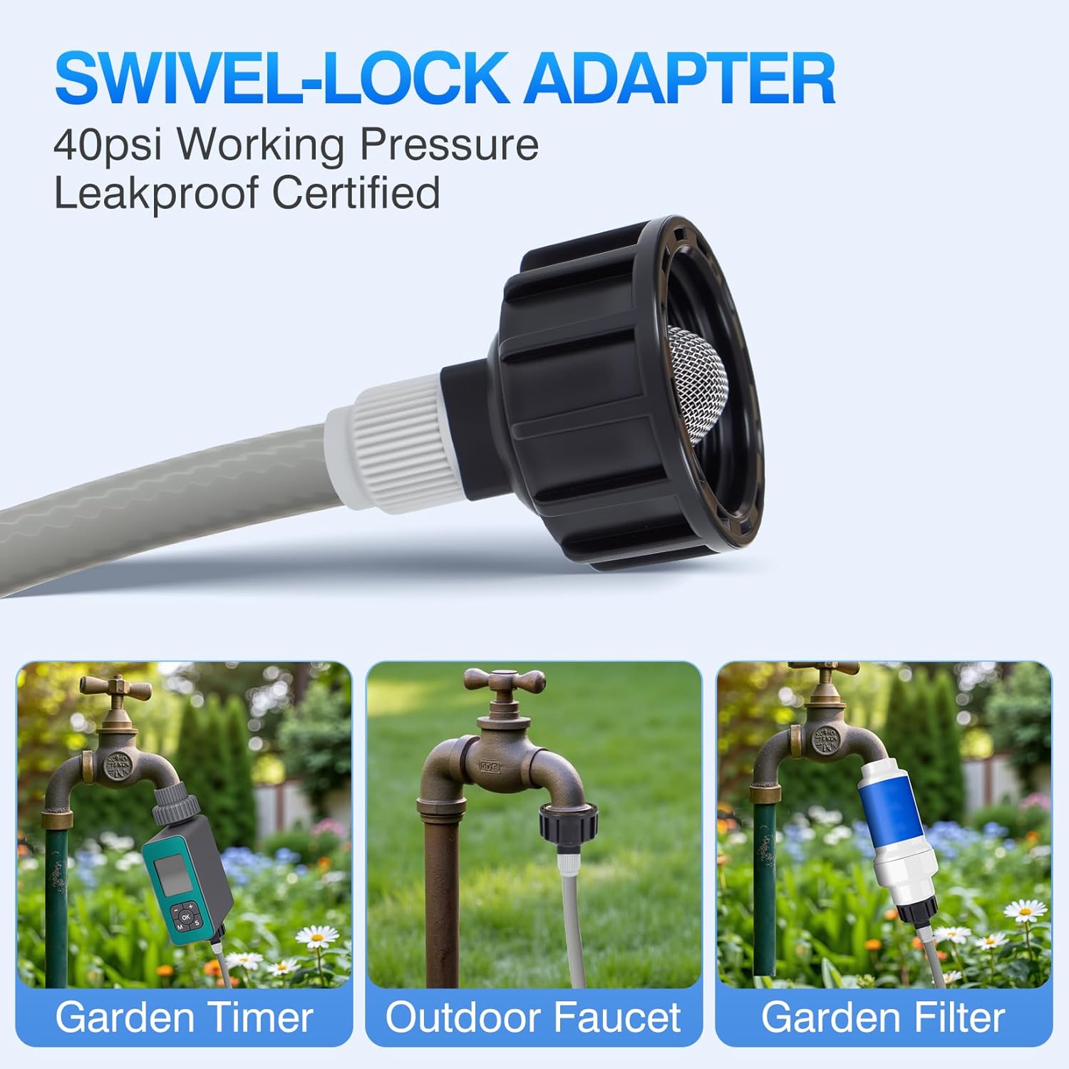 - 【Complete Brass Misting Kit】Everything you need comes in the box: 6 T-fitting with nozzle holder, 11 Hanger clips, 11 Screw 3/8" cable clamps, 25ft 5/16" misting line, 3/4'' swivel nut adapter to mount the misters for outside anywhere