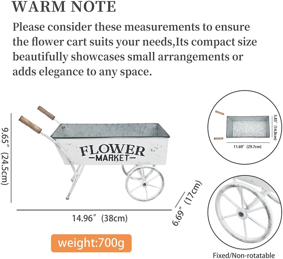 - PLANT STAND - The garden planters size: 6.69"D x 14.96"W x 9.65"H". Add a charming touch of vintage farmhouse style to your garden or patio with this delightful decorative flower market cart planter.Farmhouse planter cart provides ample space for multiple plants or flowers while maintaining a decorative appeal.The weathered finish and 'FLOWER MARKET' text give it that coveted vintage appeal, while its sturdy construction ensures lasting beauty
