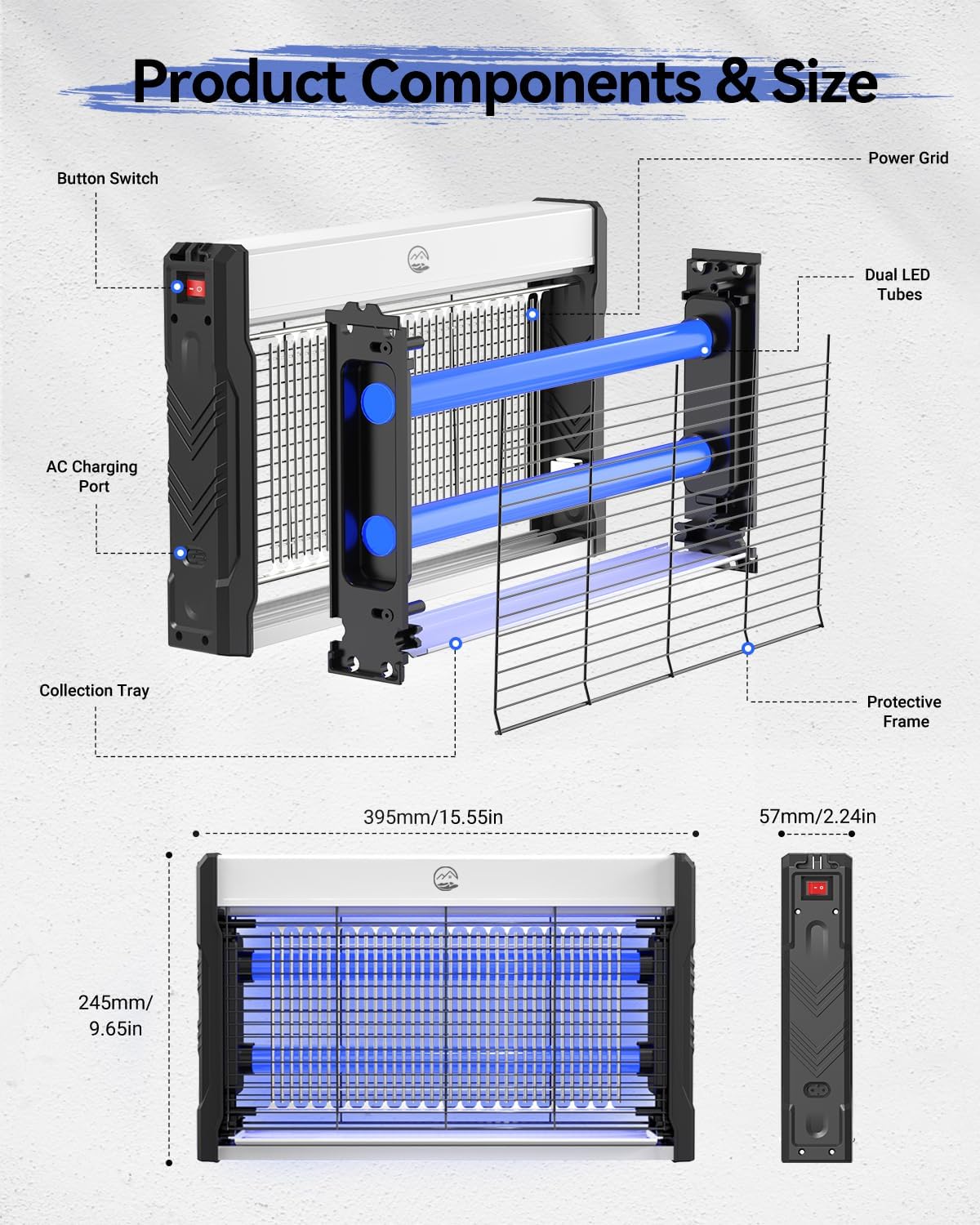 - Long-Lasting & Energy-Efficient - Mosiller Electric Mosquito Zapper with high-efficiency LED lamps, offers longer working time and saves more energy. Don't worry about the trouble of frequently changing bulbs; You can spend every season with peace of mind. (Bulbs are replaceable.)