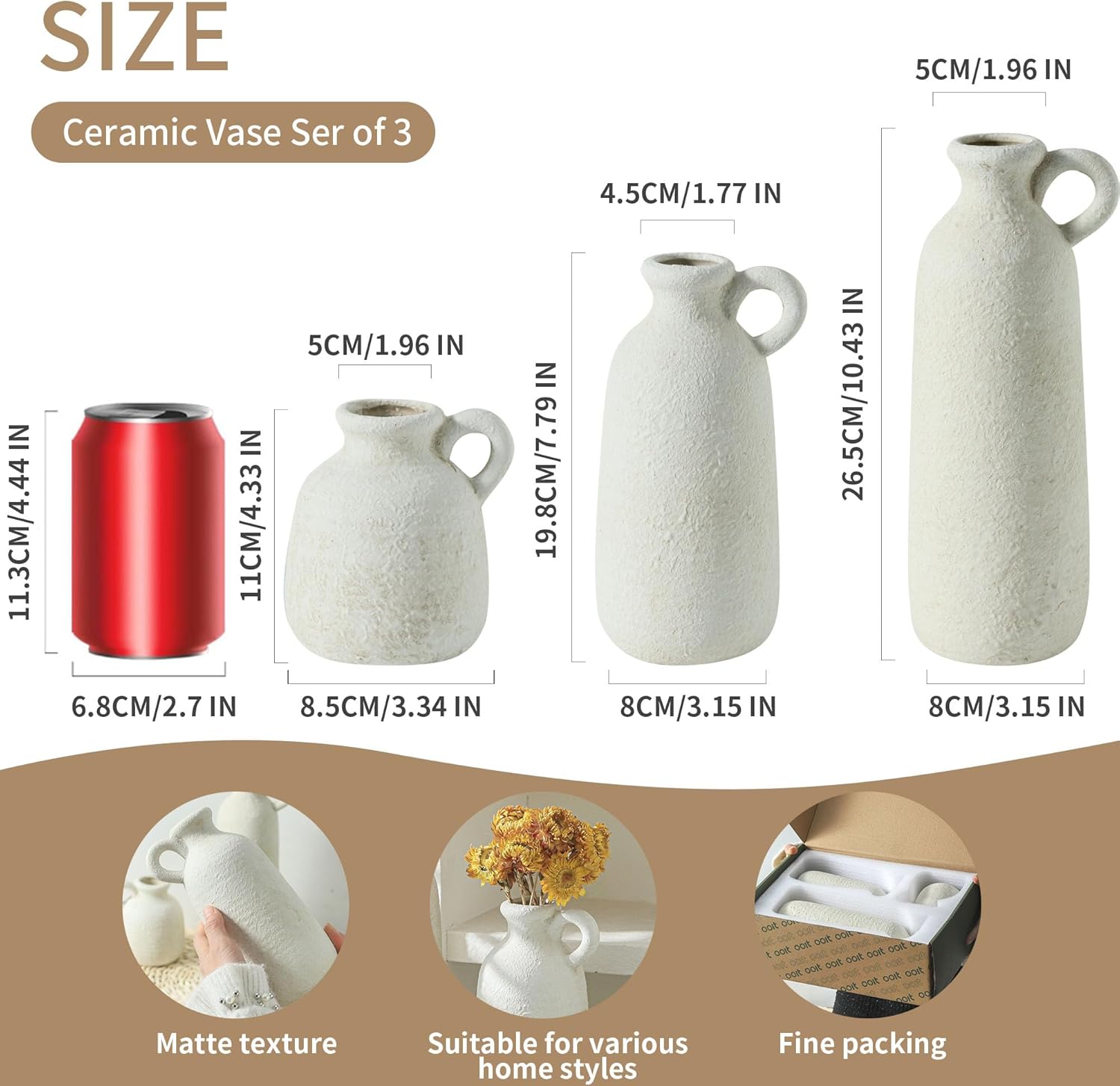 - 【Home Decor Ceramic Vases Set】More than vases, they are wonderful home decor. This vases set of 3 is perfect for artificial flowers or dries plants, can be placed individually or in combination, as a decorative vase for centerpieces, mantel, fireplace, dining table, living room, bedroom, desktop, bookshelf, entryway, minimalist side table and so on.