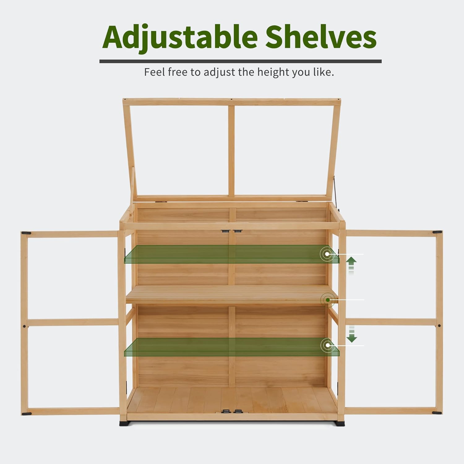 - Adjustable Shelf: The shelf of this garden cold frame could be freely adjusted height to fit various types of plants, which meets all your needs