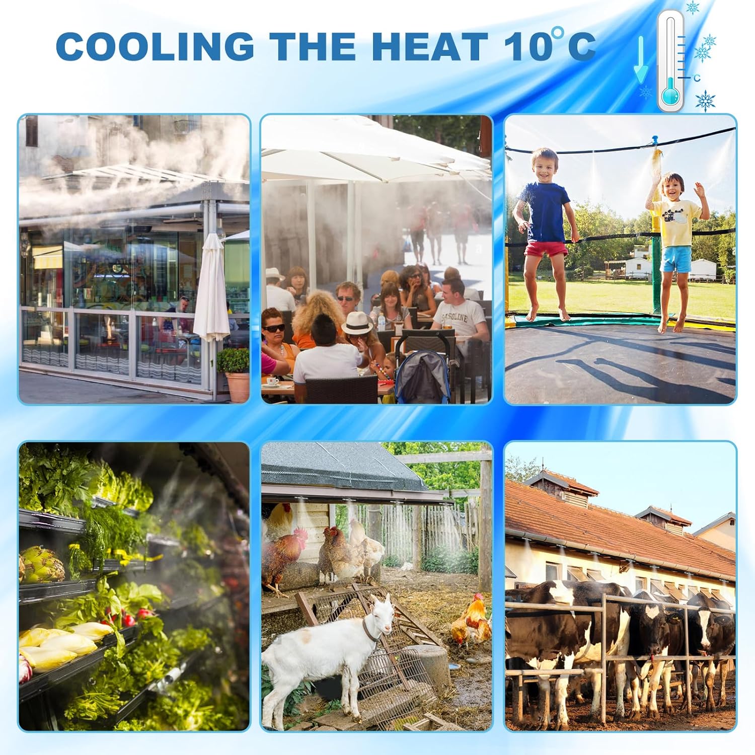- 【Effective Cooling Performance】 Engineered to produce a fine, refreshing mist that can lower ambient temperatures by up to 20°C (68°F), this low-pressure system operates safely within 0-280 psi—ideal for hot summer days.