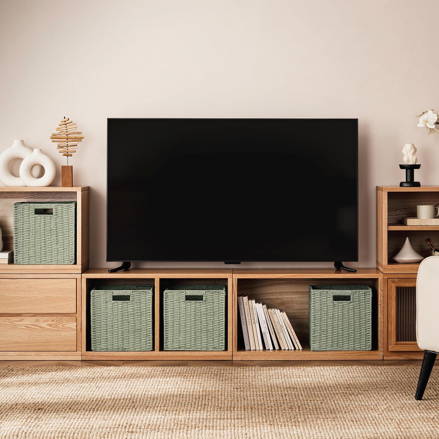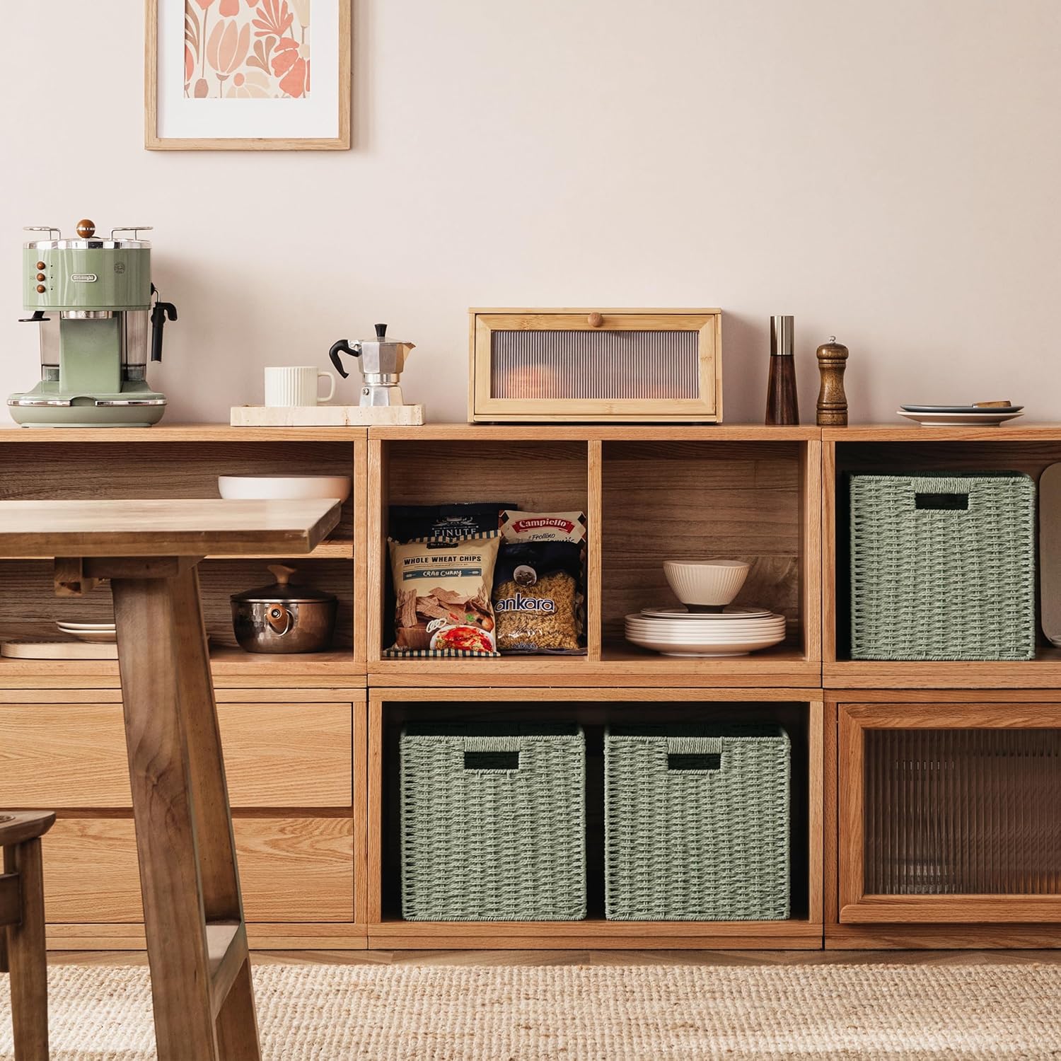 UBBCARE 2 Pack Wicker Basket, 11.8L×11.8H×11W inch Woven Paper Rope Storage Baskets for shelves, Foldable Cube Storage bin with Handle, Storage Basket for Organizing & Decor, Green