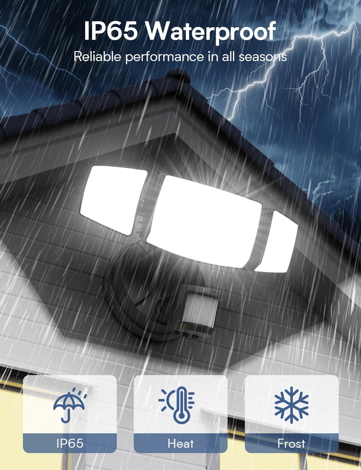 - Built to Last: With an IP65 waterproof rating, this hardwired motion detected light withstand any weather β rain, snow, extreme temperatures, ensuring reliable performance year-round.