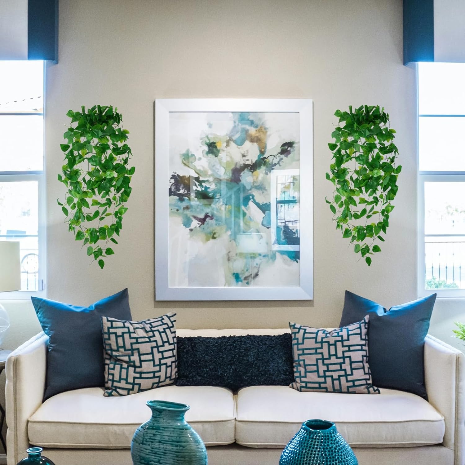 Fake Hanging Plants Vines(8pcs) for Room Decor, Artificial Ivy Greenery Garlands for Home Bedroom Living Aesthetic Kitchen Office Wall Patio Bookshelf,Indoor,Outdoor Farmhouse Decorations(No Basket)