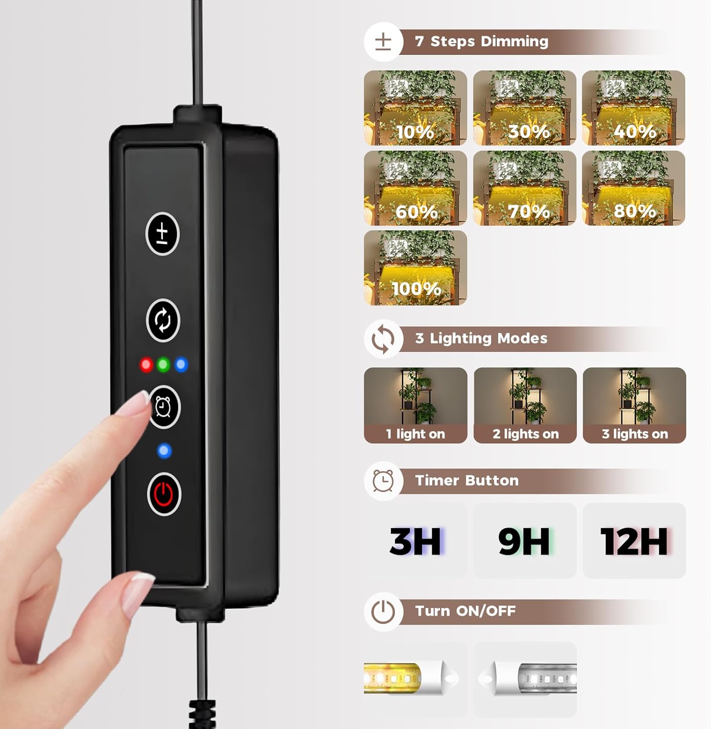 - Plant Stand with Grow Light: This plant stand features 3 timer settings (3H/9H/12H) and 10 adjustable brightness levels to support plants at every growth stage—ideal for seedlings, succulents, herbs, or medium-sized houseplants. It's 3 independent LED bars allow customizable lighting per shelf, ensuring optimal growth for each plant.