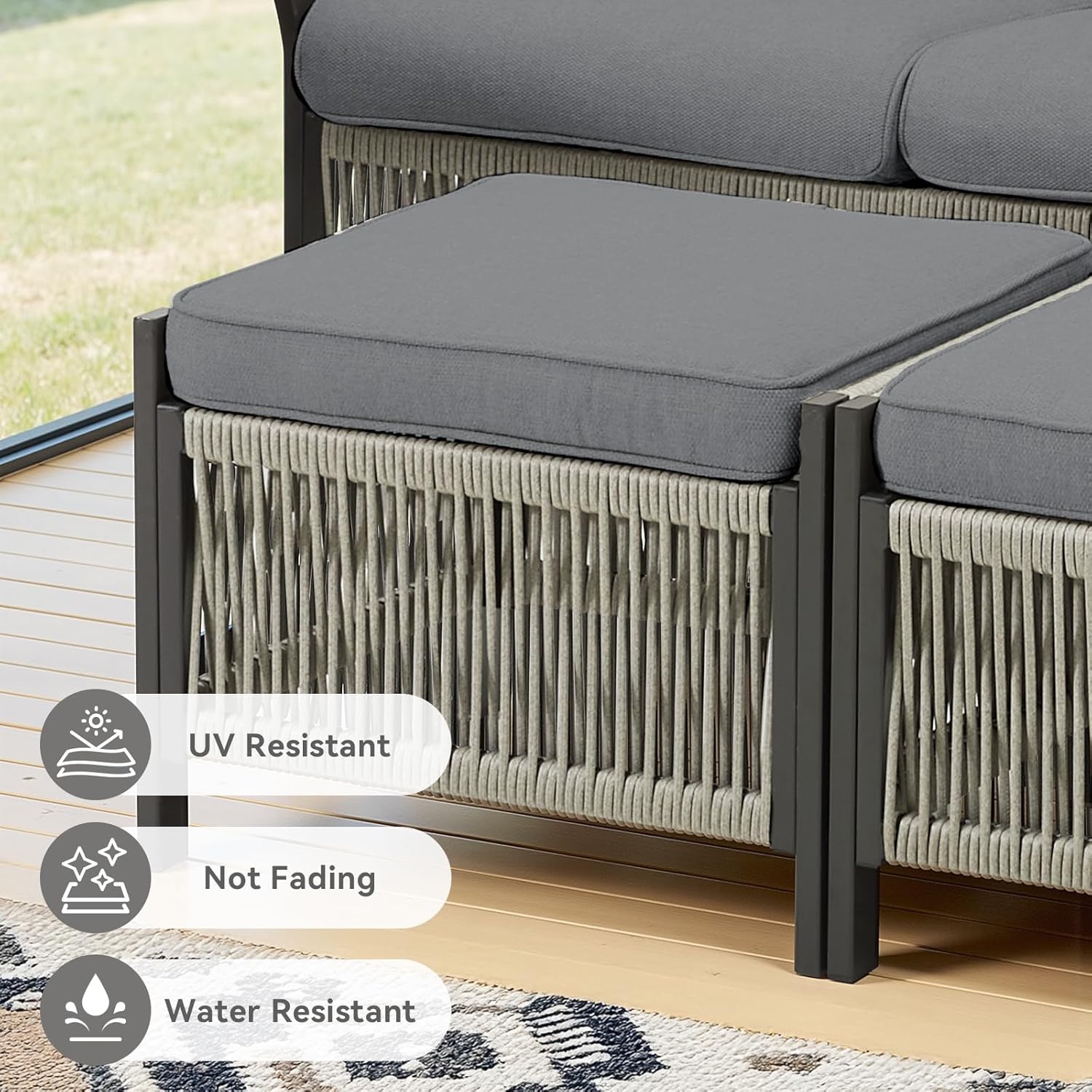 - Spacious and Stylish Seating: Featuring on-trend outward-angled armrests, this patio furniture set increases effective seating space, making it perfect for larger body types. The wide seats and oval rattan not only enhance comfort but also provide enduring beauty and strength. This outdoor sectional sofa is more premium and durable than traditional flat rattan furniture, offering a luxurious outdoor lounging experience