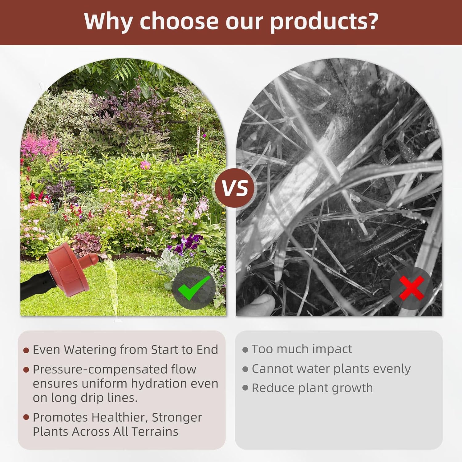 - Built to Last: Our 2 GPH Pressure Compensating Spot Watering Drippers/Emitters are made from premium UV-resistant plastic to withstand heat, sun, and outdoor weather. Designed for year-round performance, it won't crack, age or leak - ensuring reliable drip irrigation every season.