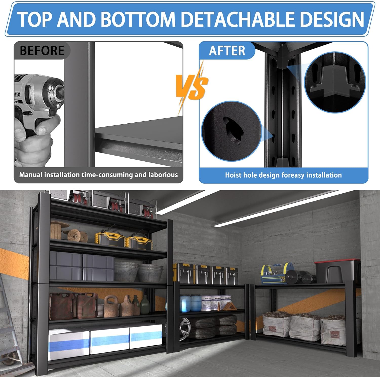 - Heavy-Duty Steel Construction & High Capacity: Built with industrial-grade metal, the NEXVRTAU shelving unit supports extreme loads on each of its 5 tiers. The heavy-duty steel frame and reinforced beams provide stable storage for tools, equipment, and bins β perfect for garages, warehouses, or any space demanding reliable strength.