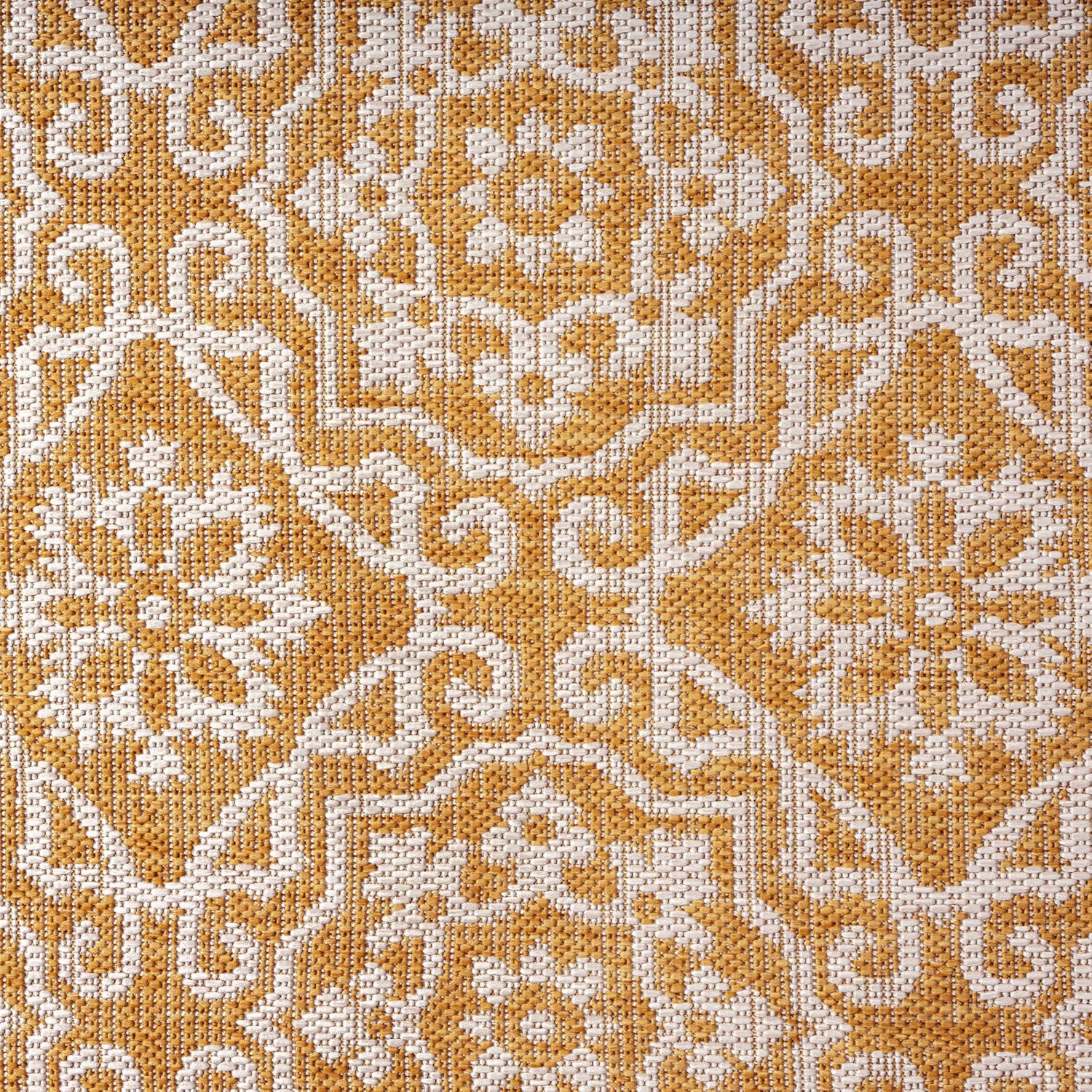 - COMFORTABLE AND DURABLE: Constructed of polypropylene yarns, this rug is woven with a texture to be comfortable underfoot.