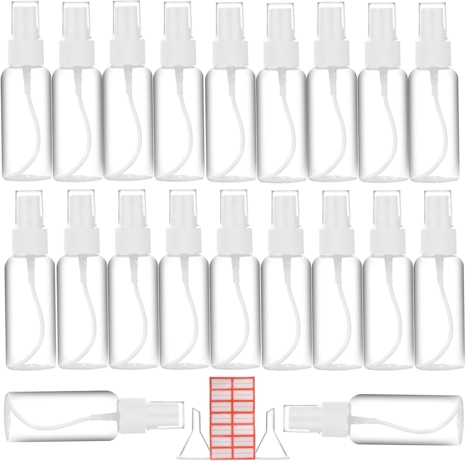 Spray Bottle, 2oz/50ml Small Plastic Fine Mist Spray Bottles, Mini Empty Travel Bottles with Funnels and Labels 20 Pack