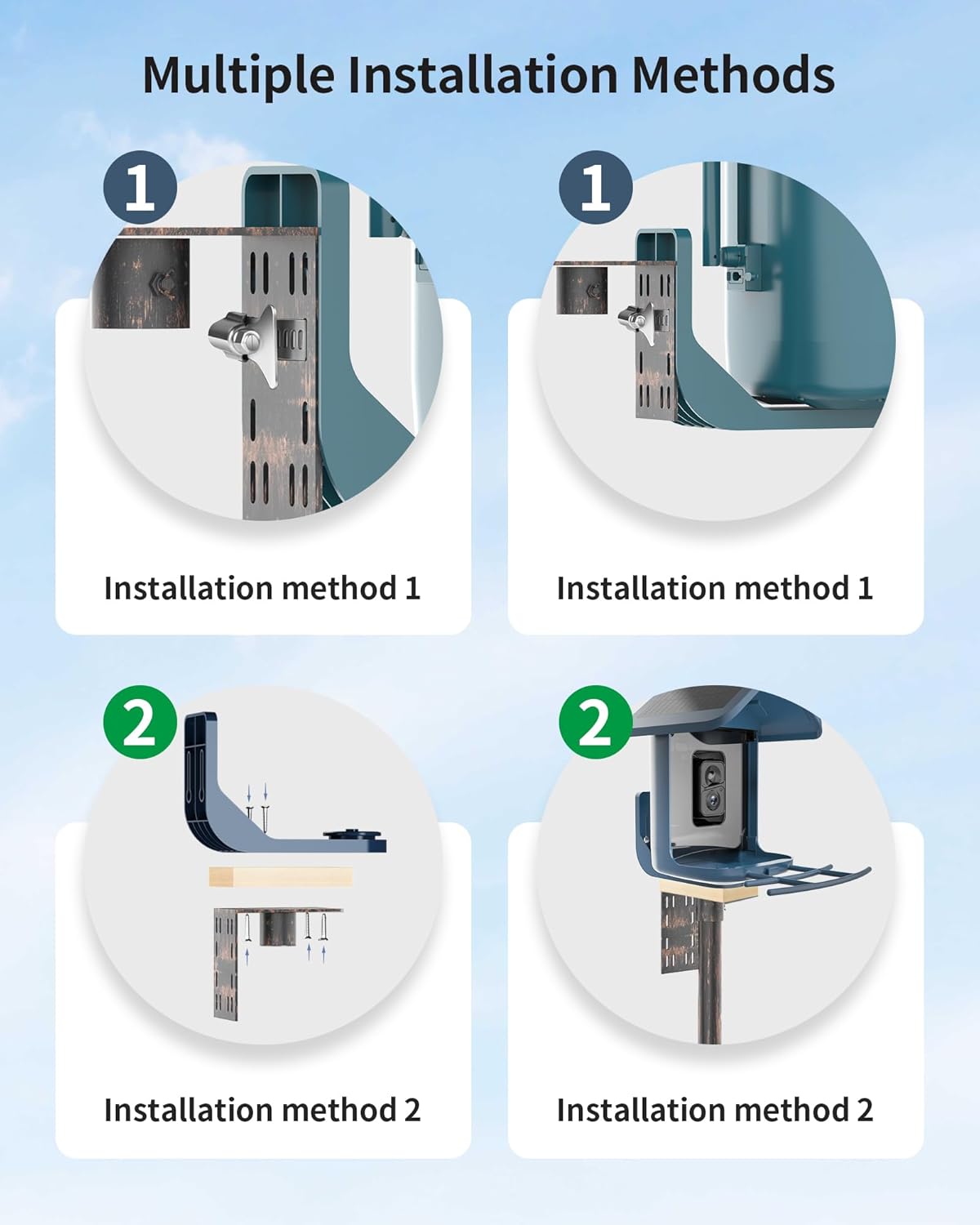 - 【Easy Installation】This bird feeding station reaches a total height of 90 inches and comes with 6.5-inch 5-prong base, 4 x connecting pole, and an L-shaped plate. The slip-in connection method allows for easy assembly, similar to stacking building blocks. Installation typically takes 20 to 40 minutes and no need extra tools. This user-friendly design ensures that anyone, from young enthusiasts to seniors, can set it up effortlessly.