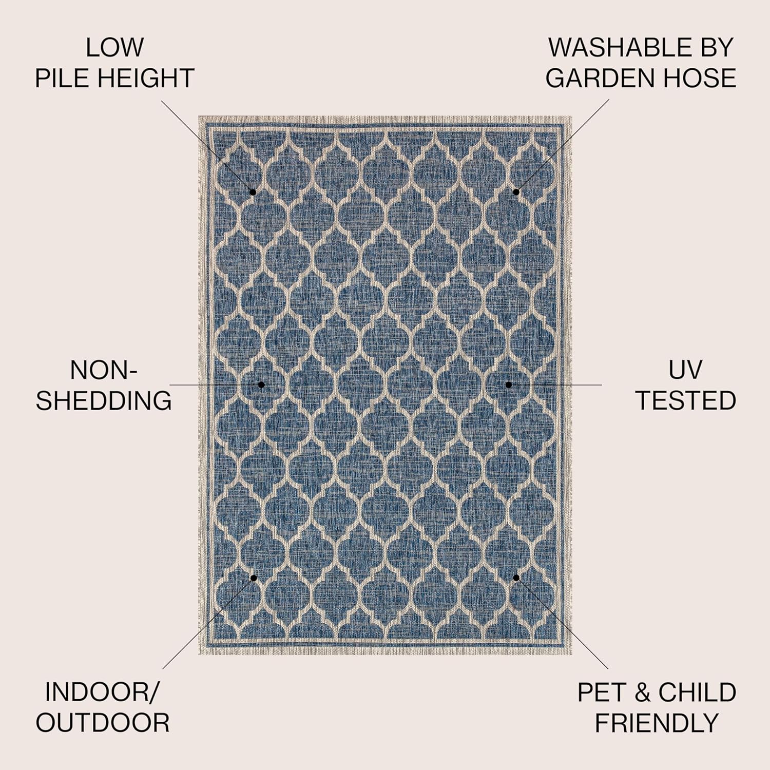 Eyely BMS109D-4R Santa Monica Trebol Moroccan Trellis Textured Weave, Pet Friendly, Non-Shedding, Stain Resistant, Easy-Cleaning, Navy/Gray, 4' Round, Indoor/Outdoor, Area Rug