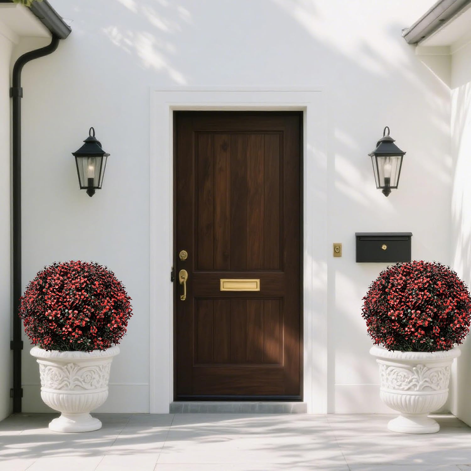 - 🌿Realistic Boxwood Topiary Ball Trees:made from high-quality materials for a natural look for year-round. Lifelike design:new red+green boxwood leaves like red flowers growing on the trees you planted.