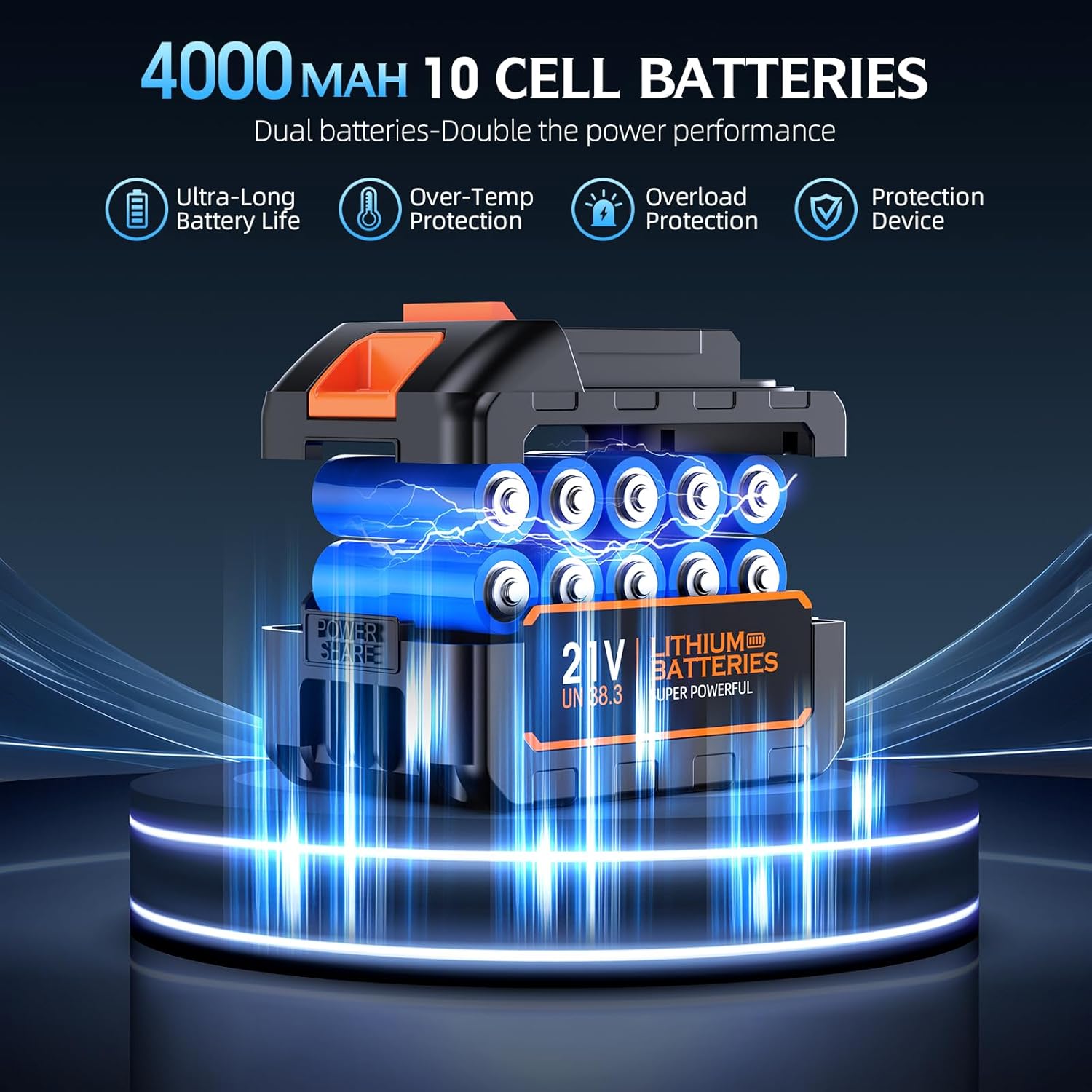 - 【Upgrade with 2 Batteries & Fast Charger】This cordless leaf blower comes with two 4.0Ah batteries and charger, offering up to 30 minutes of continuous runtime. No more long charging waits—this battery leaf blower is always ready for efficient lawn care and cleaning tasks.