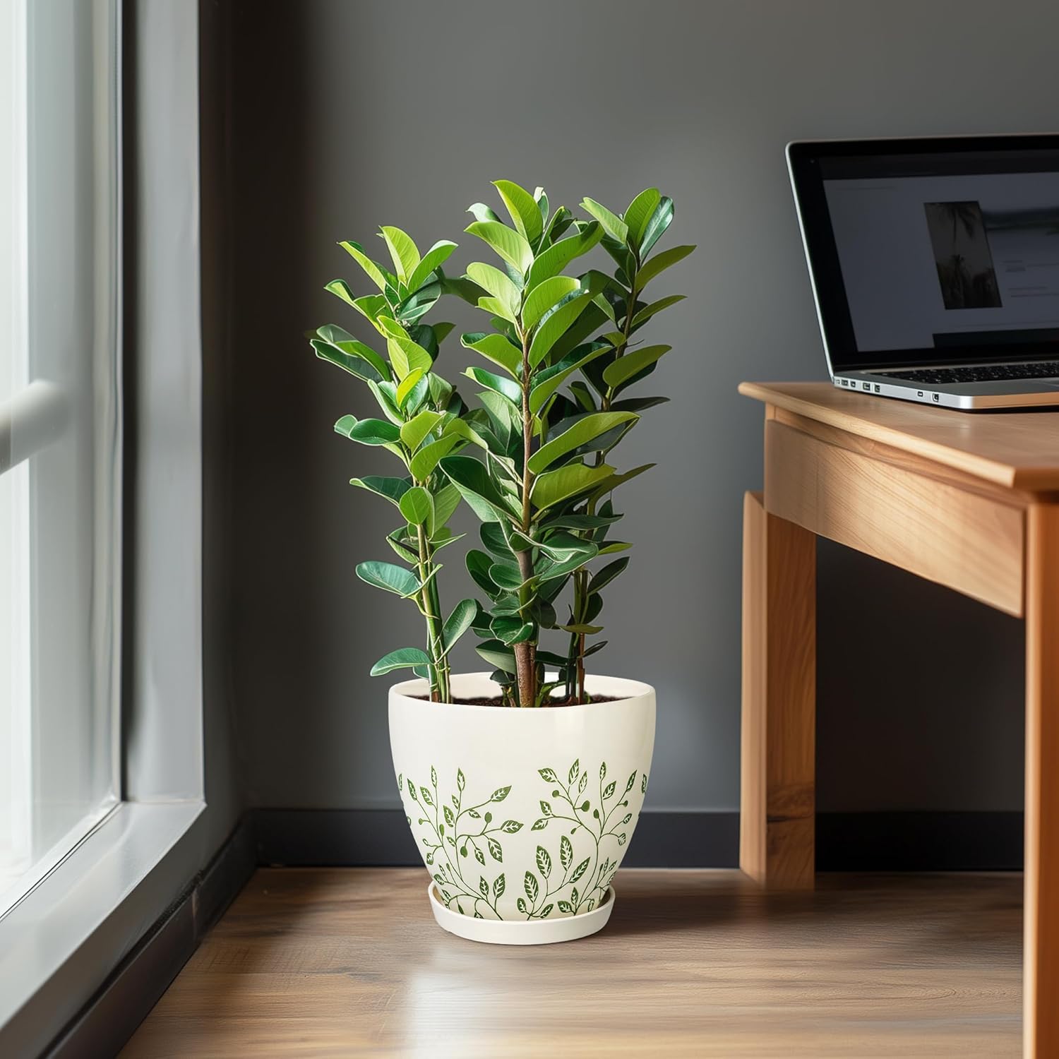 - Plant Pot with Drainage Hole and Saucer: There is a drainage hole at the bottom of the ceramic pots for plants, which maintains optimal soil moisture. The removable saucer catches excess water, keeping your surfaces clean