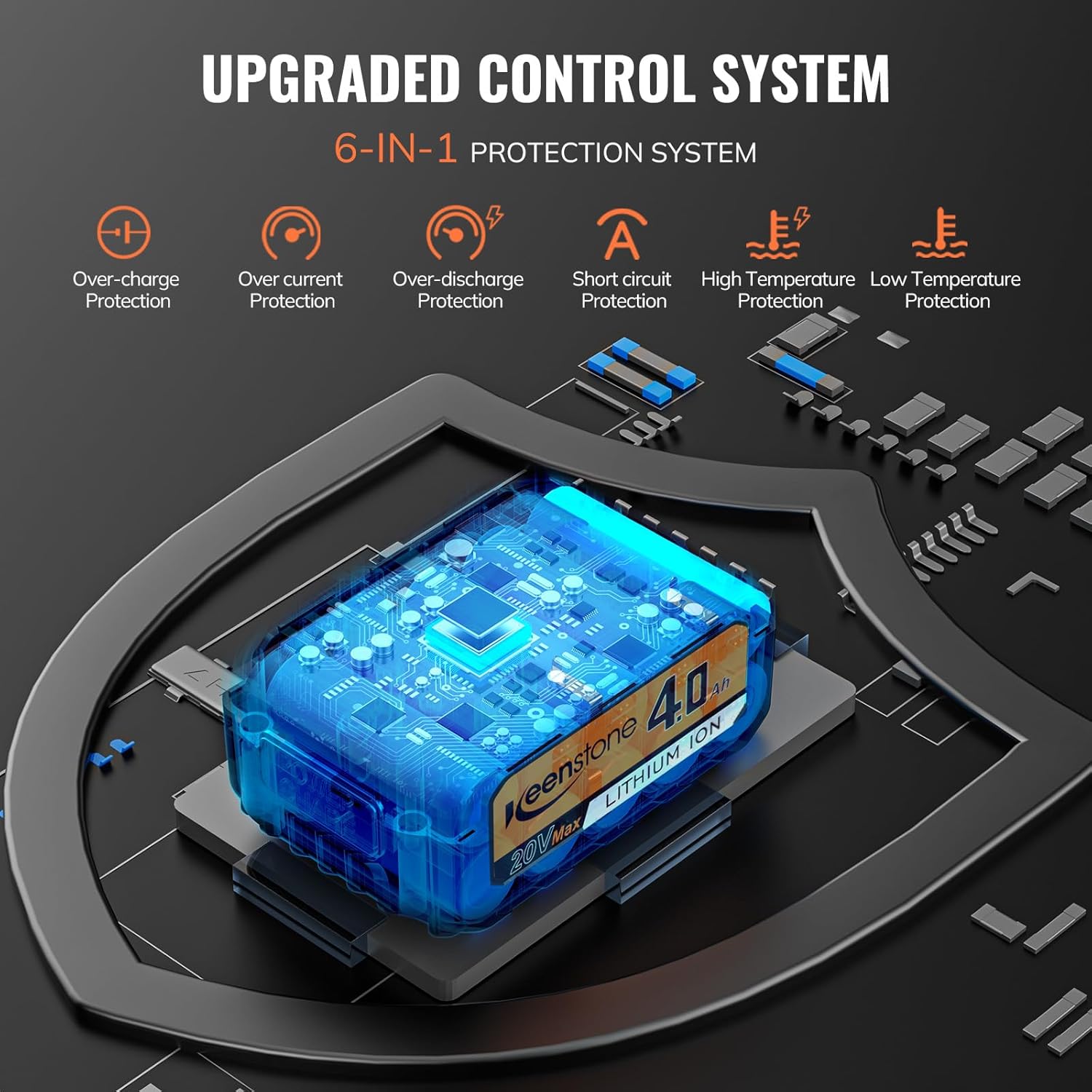 - ăExtended Runtime & Multi-Protection Batteryă This cordless leaf blower delivers 95 mins runtime with 2Ă4.0Ah batteries (500+ cyclesïŒ& 2 fast chargers. The battery works with all Keenstone tools. Built-in 6-protections ensure safe operation. Perfect for large yards and wet conditions. Clear your entire lawn of wet leaves with this electric leaf blower on a single charge, without power loss