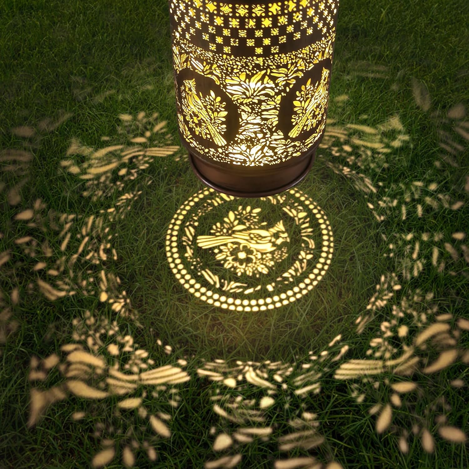 - Elegant Tai Ping Bird Design β This stunning solar lantern features intricate Tai Ping bird patterns that cast beautiful floral shadows when illuminated, creating a tranquil and decorative atmosphere in your garden, patio, or outdoor space.