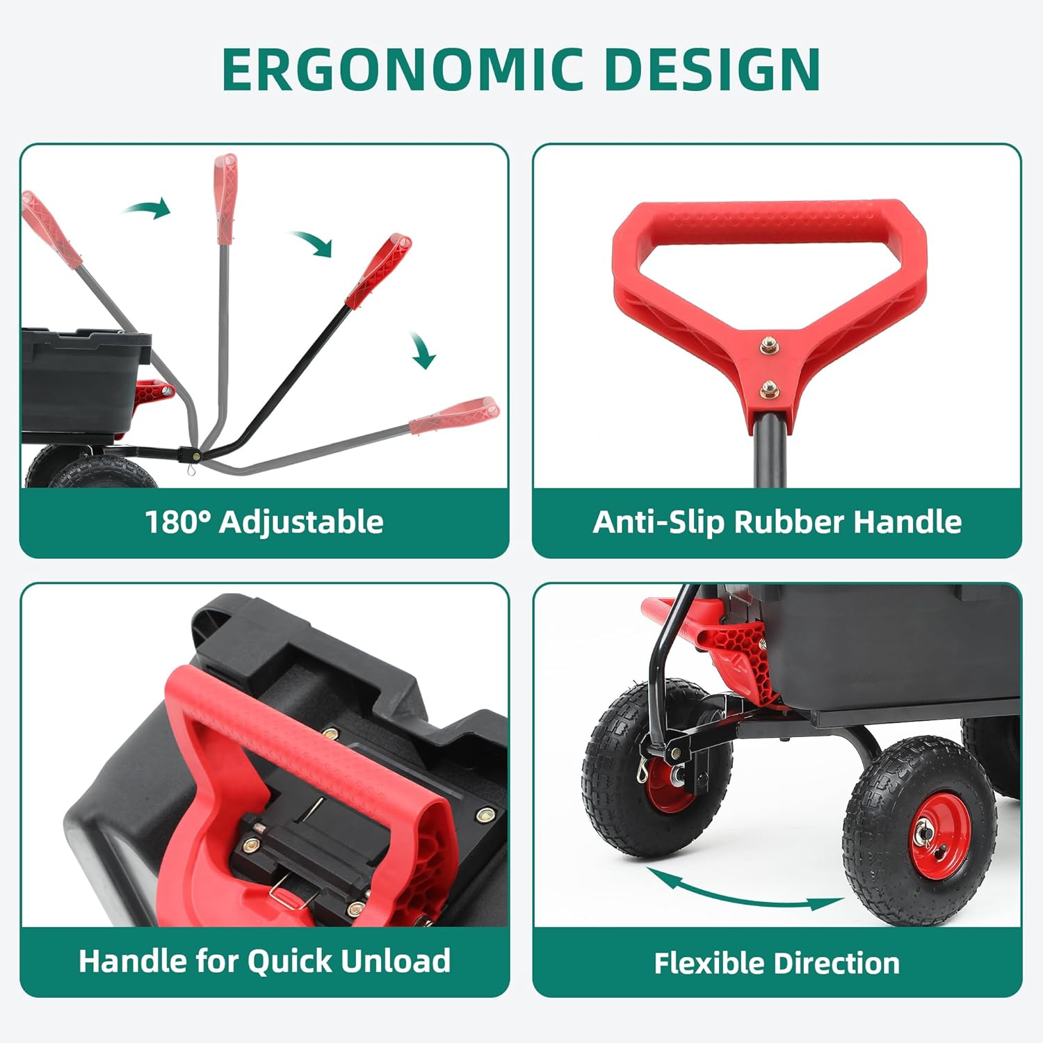 800lb Garden Dump Cart, Heavy Duty Wheelbarrow Dump Wagon with 4 Wheels&Quick-Release Dumping,Utility Wagon Carts for Yard,Farm and Garden