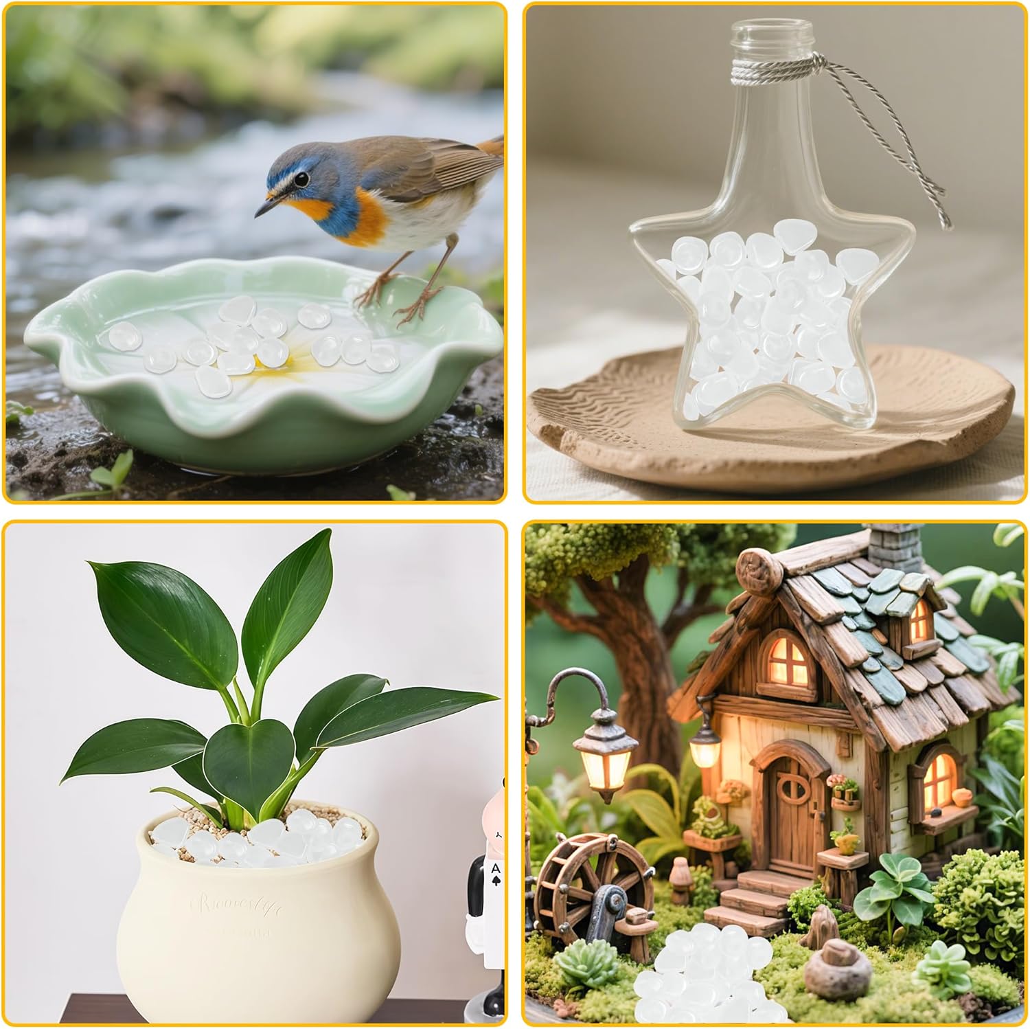 - Various Uses: These glowing pebbles are ideal as fish tank rocks, aquarium gravel, fairy garden decorations, betta fish tank accessories, turtle tank accessories, outdoor rock decor for yards, walkways, as well as for filling vases, flowerpots, and plant gardens, making your home and yard incredibly beautiful.