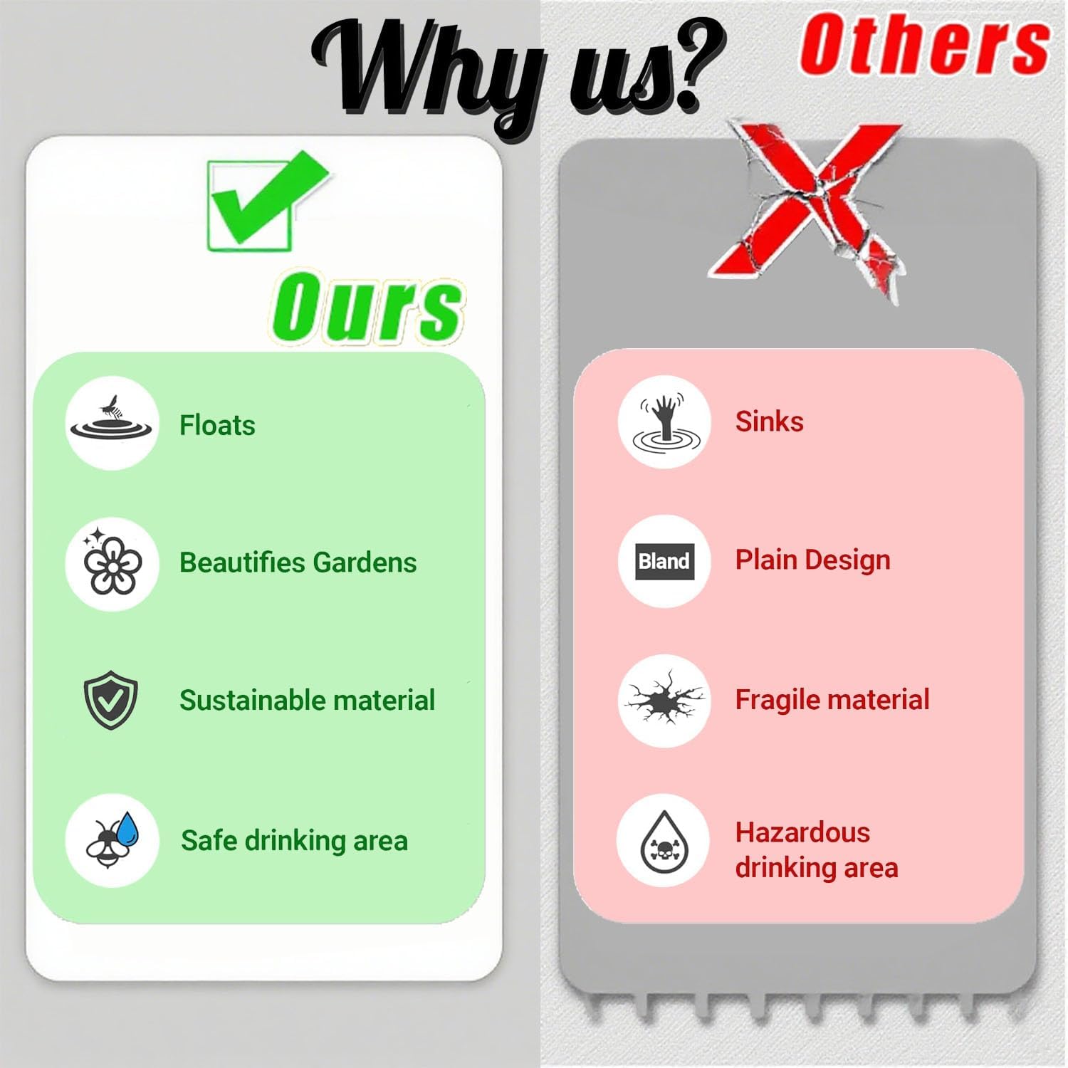 - Durable Material: Crafted from lightweight yet non-deforming foam, this wildlife waterer floats effortlessly and remains stable in bird baths, ponds, or shallow water dishes. Itβs perfect for offering a reliable water source to bees and butterflies alike and holds up well outdoors in all weather condition