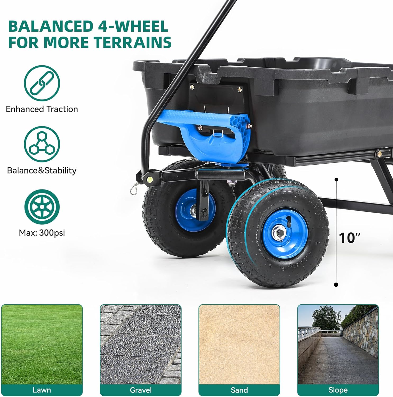 800lb Garden Dump Cart, Heavy Duty Wheelbarrow Dump Wagon with 4 Wheels&Quick-Release Dumping, Utility Wagon Carts for Yard, Farm and Garden(Blue)