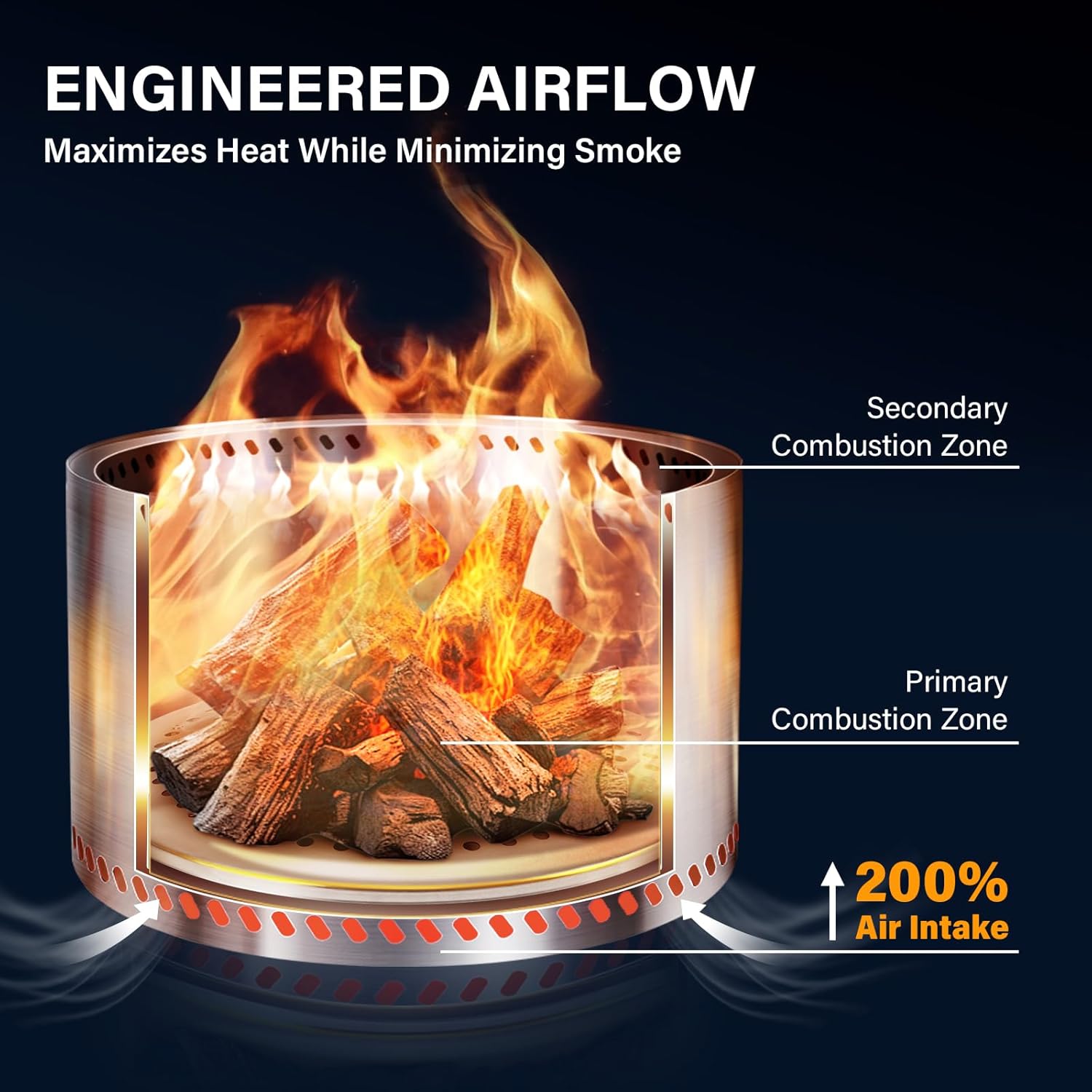- Revolutionary Smokeless Technology: Advanced double-wall construction with 360Β° airflow system eliminates up to 90% smoke and odors, ensuring everyone enjoys comfortable, smoke-free gatherings around the fire
