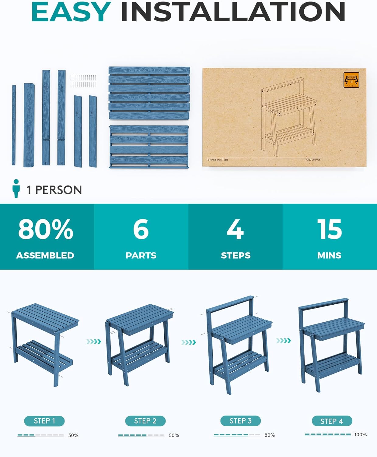- Quick & Tool-Free Assembly: Everything you need for setup comes in the box. Just follow the straightforward instructions, and you can have your new garden work bench fully assembled and ready to use in under 20 minutesāno extra tools required.